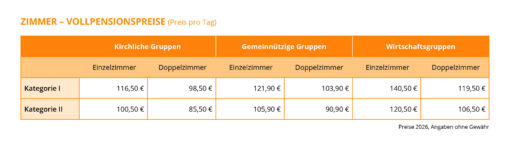 Zimmer - Vollpensionspreise